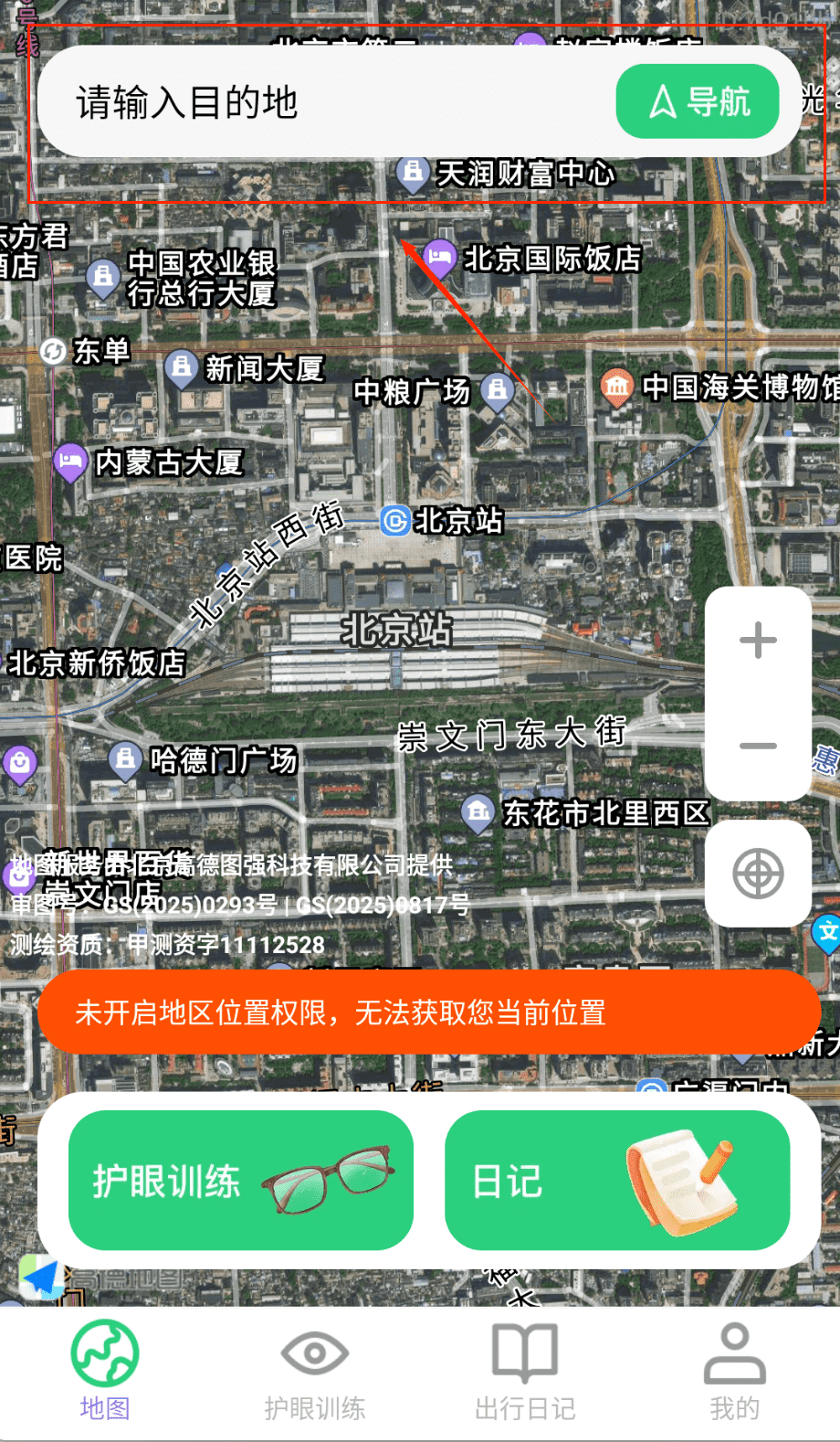 1、在首页搜索栏输入目的地名称或地址,系统会自动匹配相关地点信息,选择正确目标位置后点击导航按钮即可开始路线规划哦。
