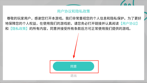 2、首次打开游戏?在弹窗中点“同意”完成用户协议与隐私政策确认后即可继续。