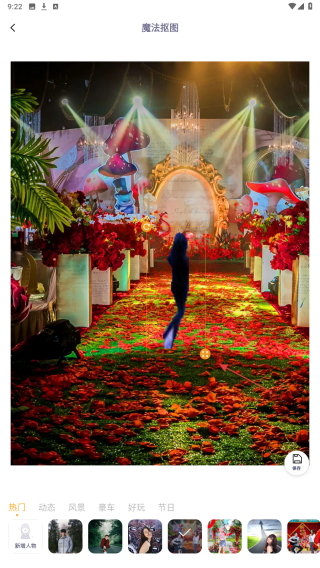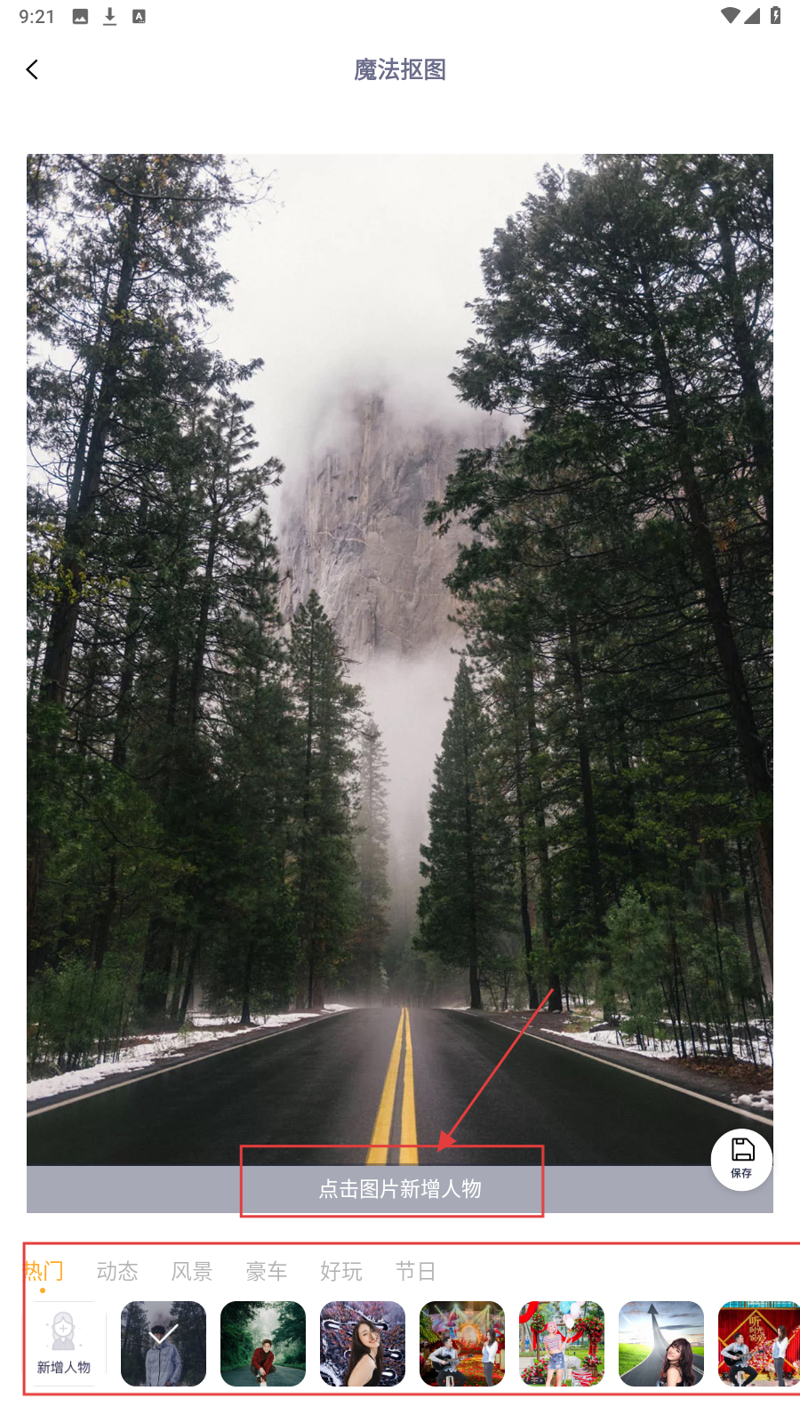 2、进入魔法抠图页面,点击【点击图片新增人物】,可从下方分类中选择人物添加到图片中。