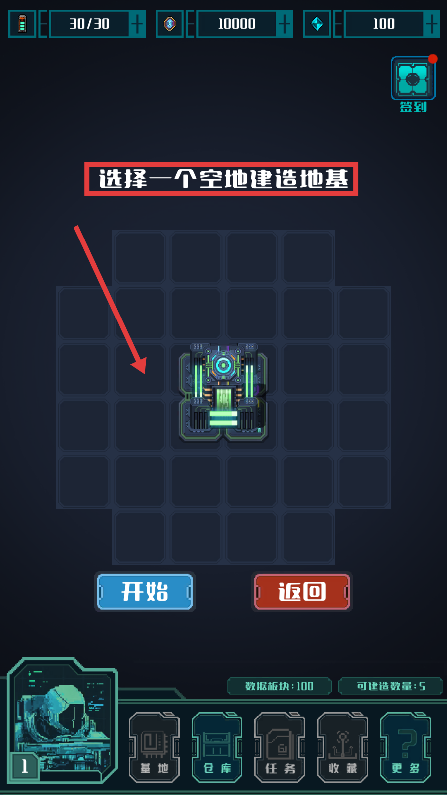 1、按照【选择一个空地建造地基】提示,在合适空地进行建造准备。