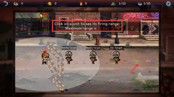 4、战斗时点击单位查看【firing-range】,最大射程【12.5m】,依据距离标识安排站位,确保有效打击。