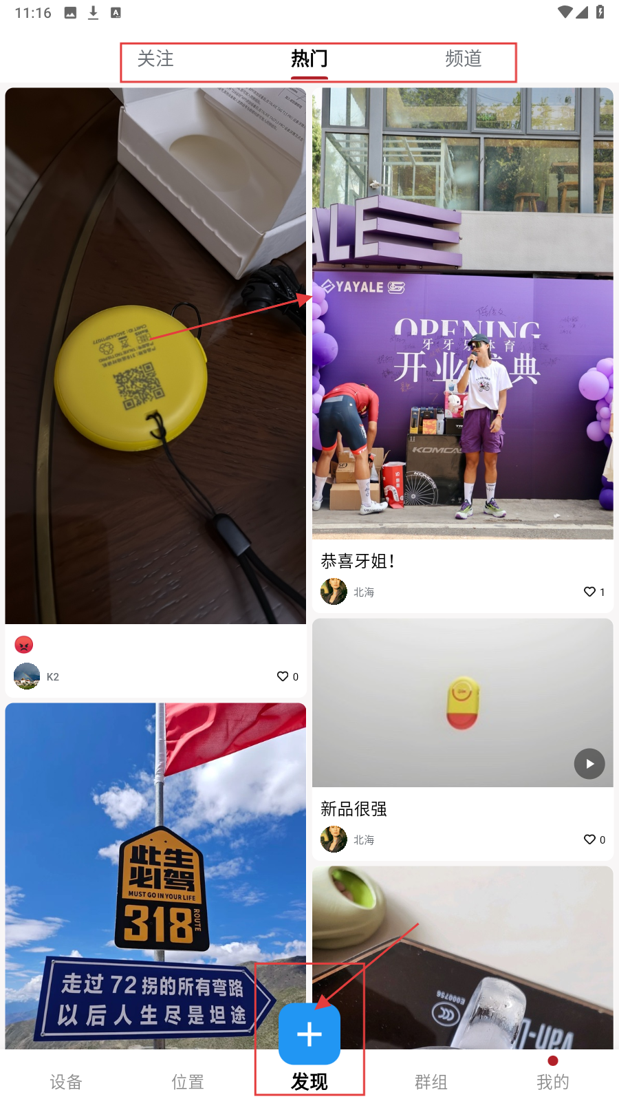 1、进入应用,在【发现】页面,可以查看热门、关注等发布的内容,也可以点击下方【+】自己发布内容哦。