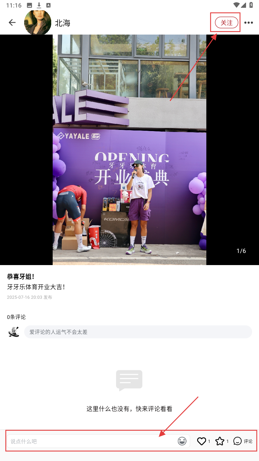 2、进入别人发布的笔记页面,可以进行点赞、评论等操作,要是喜欢这个博主还可以进行【关注】。