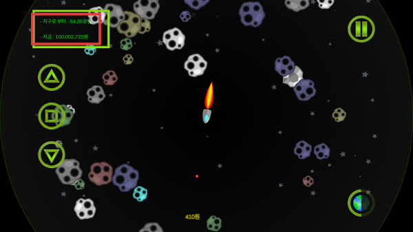 2、驾驶飞船朝画面中的陨石方向前进,发射炮弹,把陨石击碎。