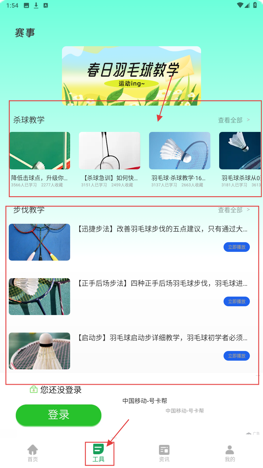 1、视频教学库:收录海量专业教学视频,涵盖杀球、步伐、发球等技术环节,支持按难度与类型筛选,随时随地学习。