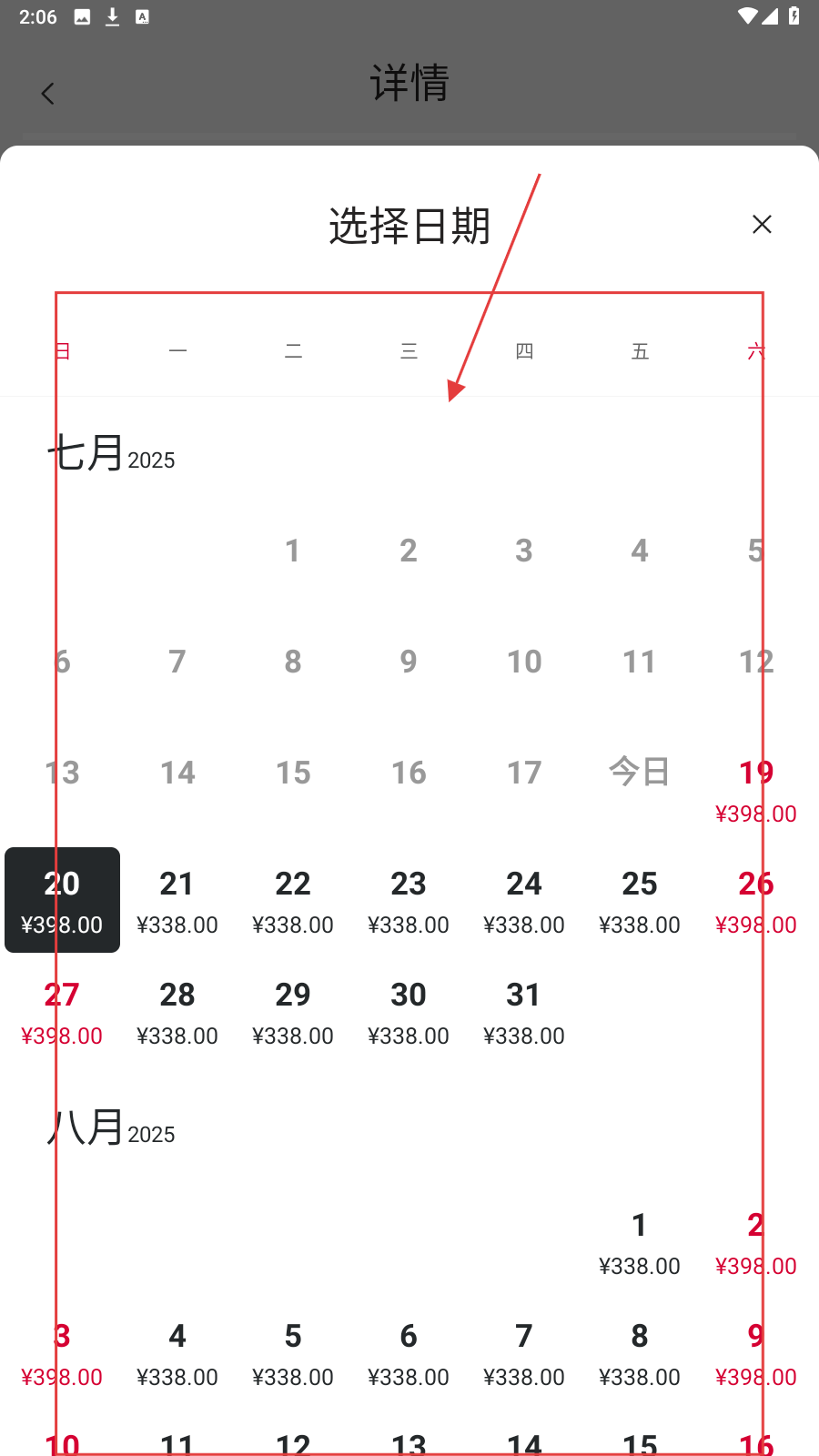 4、若默认日期不合适,点击【查看更多日期】,在日历中挑选心仪日期,不同日期价格可能不同。