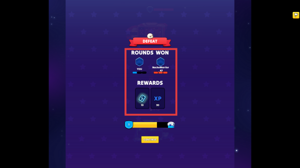 4、若战斗失败,领取【REWARDS】后点【CONTINUE】,积累资源再挑战。