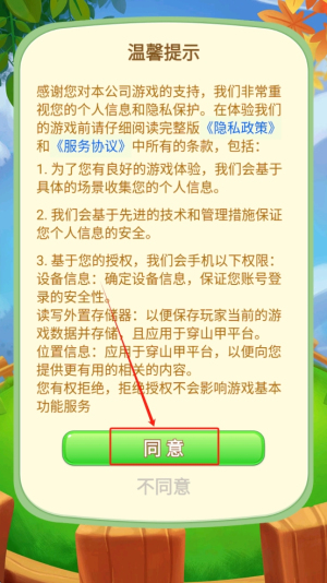 1、首先,阅读并同意游戏的隐私政策,点击“同意”按钮。