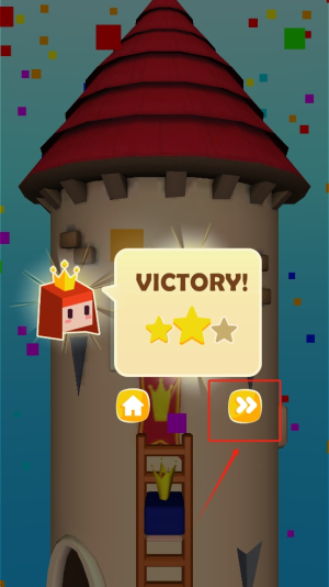 4、最后,到达塔顶并点击“VICTORY!”按钮完成关卡。