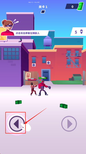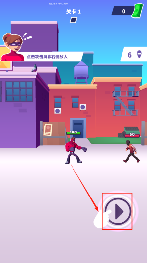 1、操控肌肉男进入闯关场景,遇到敌人时疯狂点击屏幕发动攻击,利用连续点击打出组合拳,快速击溃敌人,掌握点击节奏提升效率。