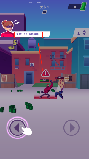 4、当出现“危险!!!后退躲开”提示时迅速后撤并发动连击即可通关。