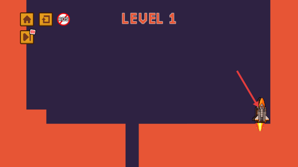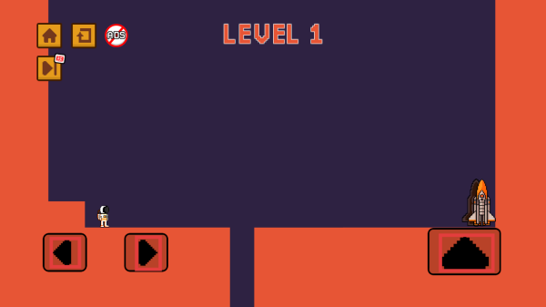 3、关卡1用左右按键移动角色,遇地形差按跳跃键,逐步靠近右侧火箭目标。