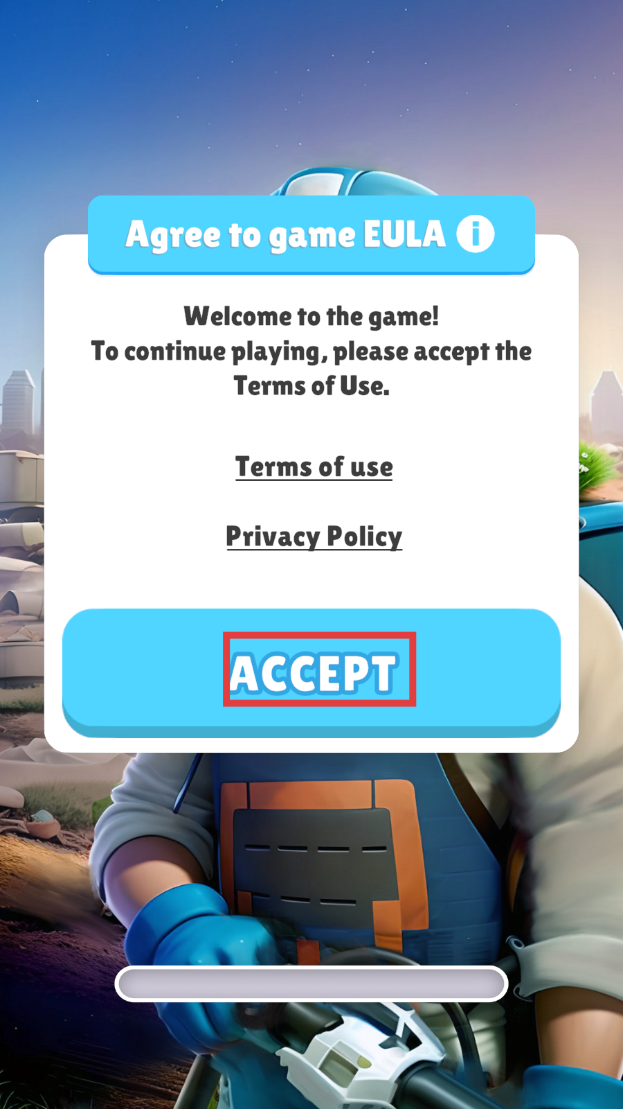 1、进入游戏先点【ACCEPT】同意协议,可查看【Terms-of-use】和【Privacy-Policy】了解规则后开始。