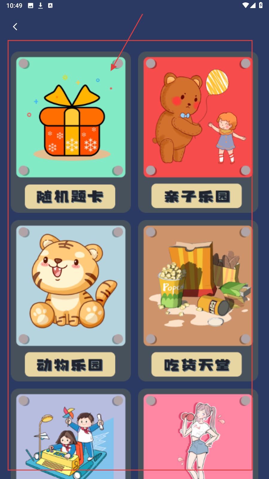 2、选择游戏主题,如【随机题卡】【亲子乐园】等,进入对应游戏模式。