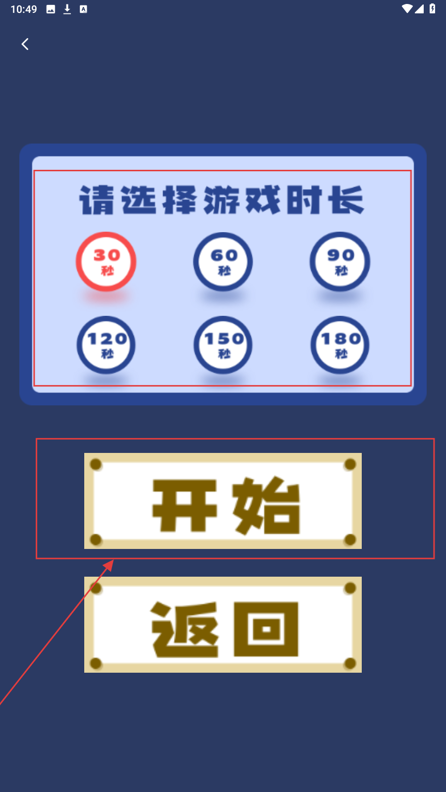 3、选择游戏时长,点击【开始】,进入游戏答题环节。