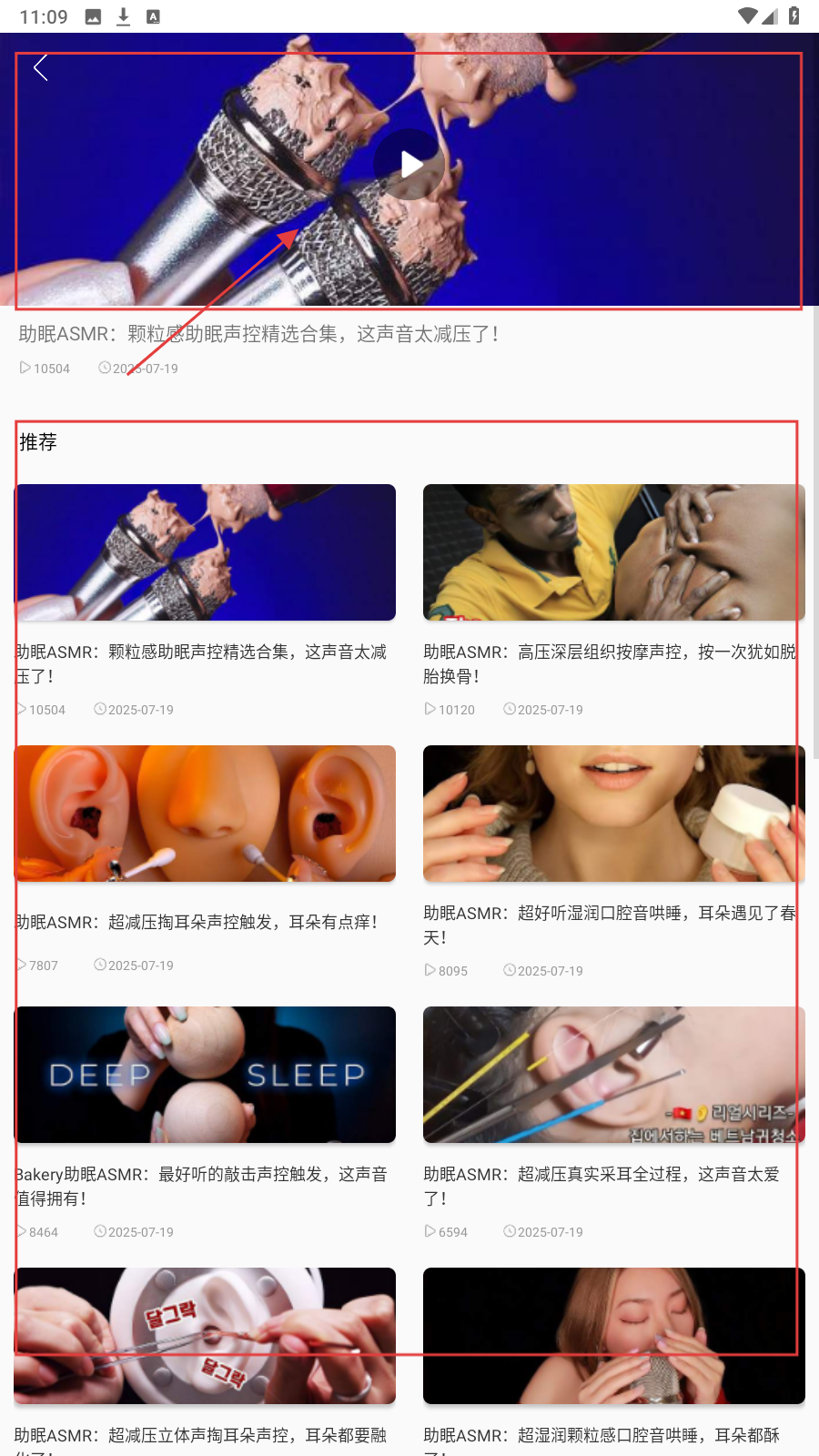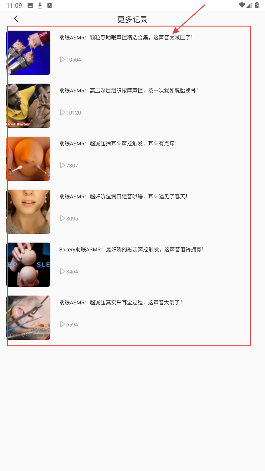 2、在【更多记录】页面,想播放的助眠视频并点击。