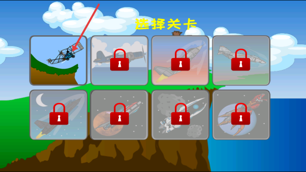 1、选第一个解锁关卡,进入基础飞行挑战,熟悉操作后再尝试后续带锁关卡。