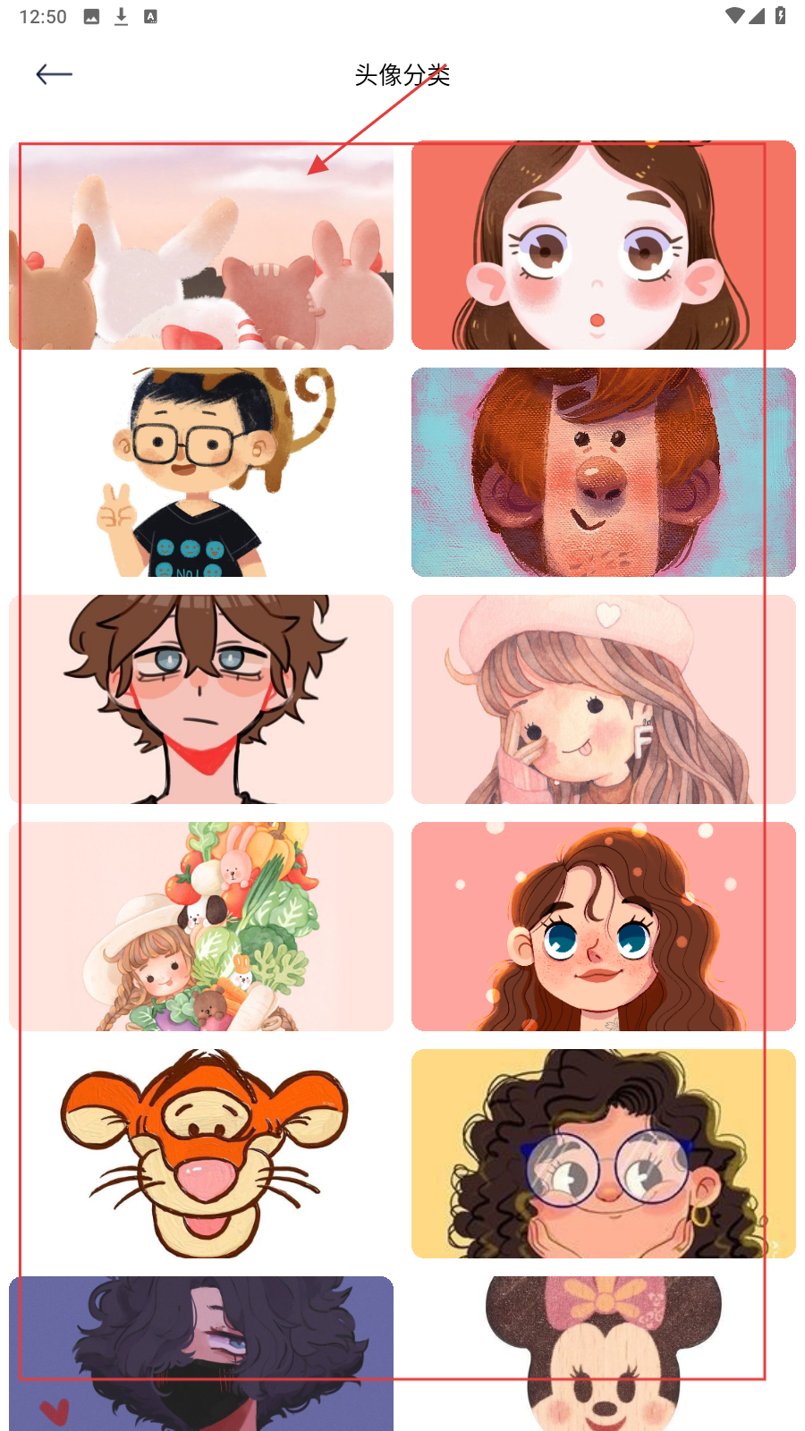 2、选择喜欢的头像分类,查看该分类下的头像图片。