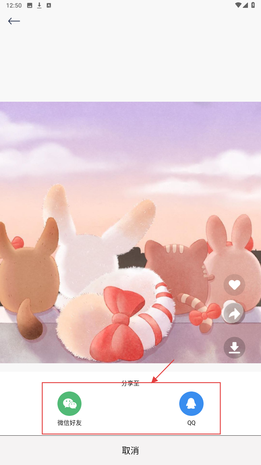 4、点击【分享】,可选择【微信好友】或【QQ】,将头像分享给好友。