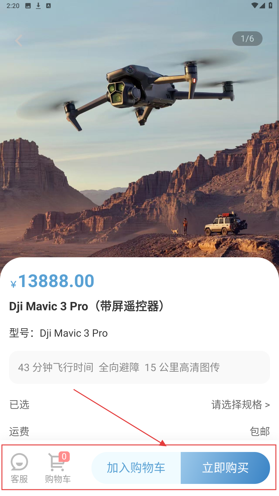 4、点击选中的商品,进入商品详情页面,可查看商品价格、规格、评价等信息,选择【加入购物车】或【立即购买】。