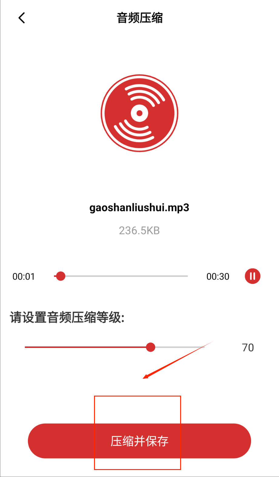 3、点击"开始压缩"按钮,等待处理完成后试听效果,满意后保存至本地或直接分享呀。