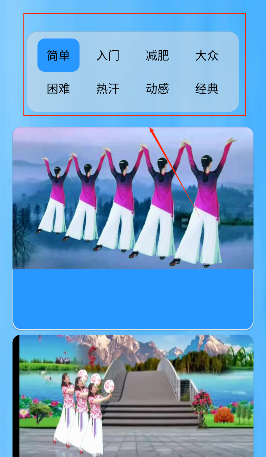 1、打开APP进入广场舞专区,按风格或难度筛选课程,查看教学视频详情和老师介绍哦。
