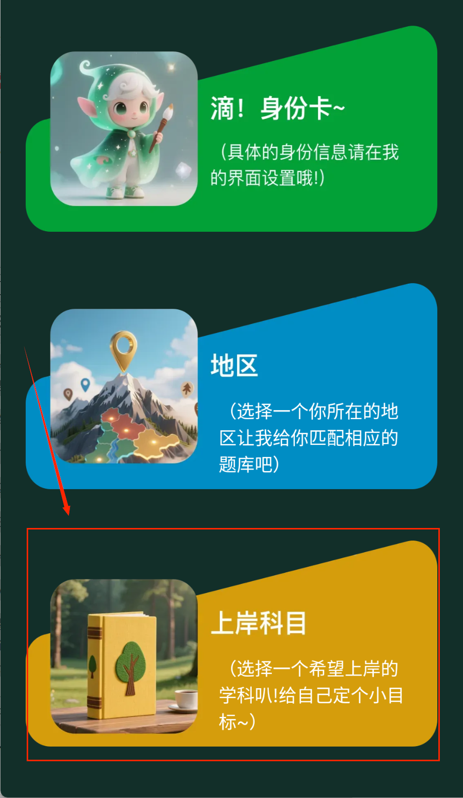 1、科目选择模块覆盖主流资格考试类型,题库资源按考试大纲科学分类,满足不同专业领域备考需求。