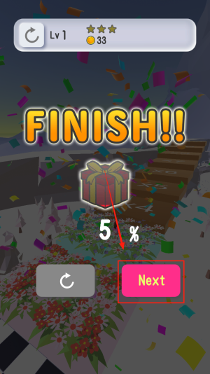 2、通关后屏幕出现“FINISH!!”,点“Next”即可进入下一关。