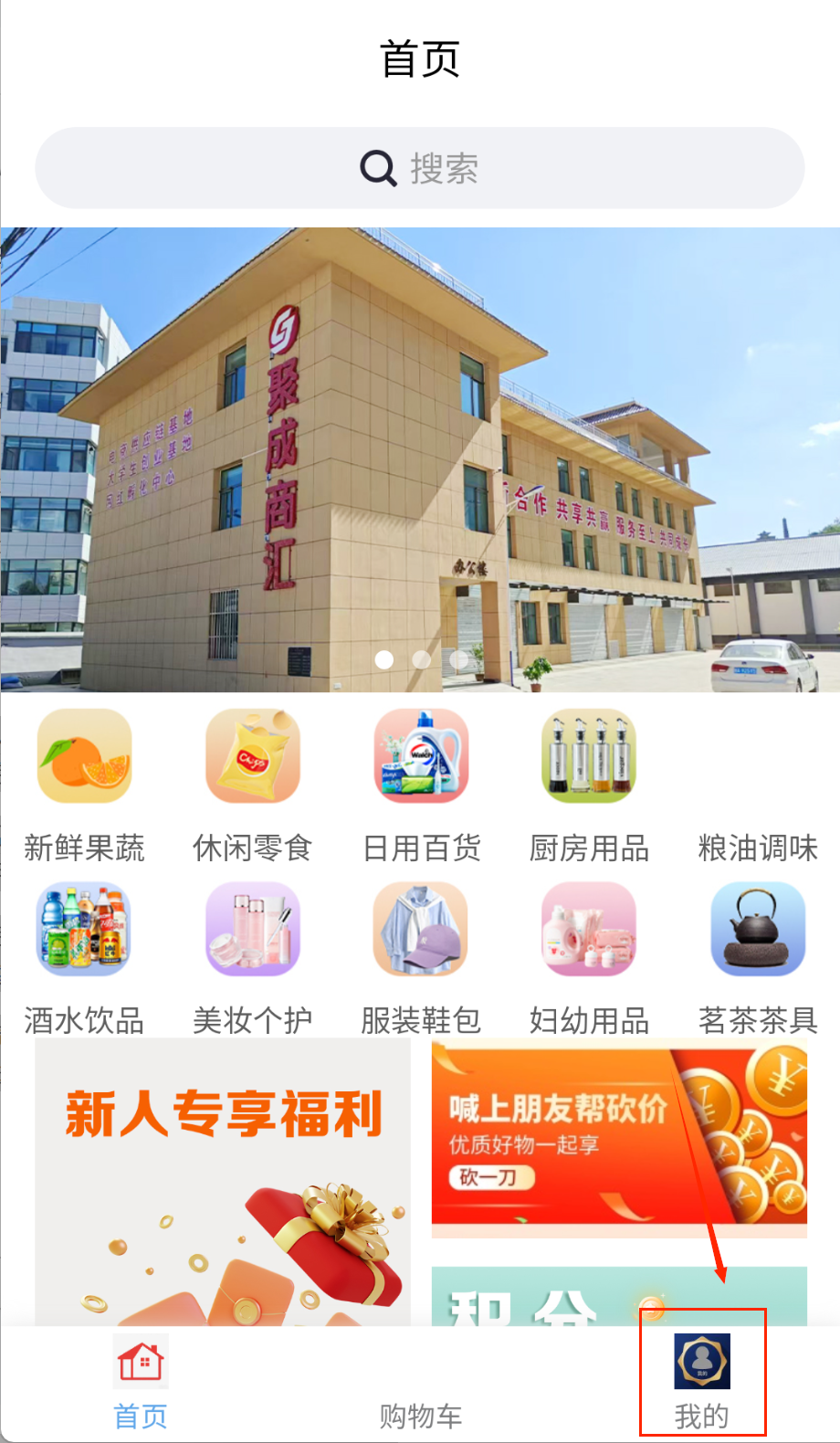 1、注册账号后领取新人礼包,浏览首页推荐商品或通过分类查找所需物品,首次使用需完成手机号注册流程。