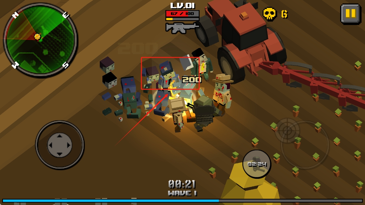 1、像素射击体验:作为像素类的射击打僵尸游戏,像素风格复古独特,射击僵尸的画面简单却有冲击力,玩起来很有味道。