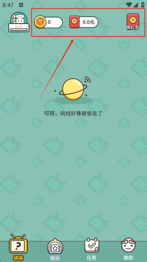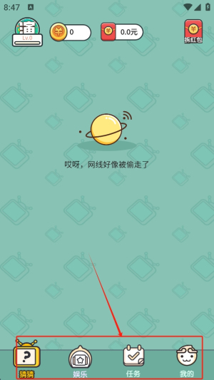 3、若出现网络连接问题,点击底部导航栏的“娱乐”选项尝试重新连接。