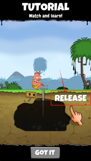 2、观看教程,了解游戏基本操作,点击“RELEASE”学习如何释放钻头。