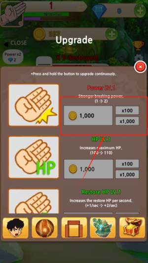 4、当你获得足够的金币后,可以通过点击“Upgrade”按钮来升级你的角色能力。