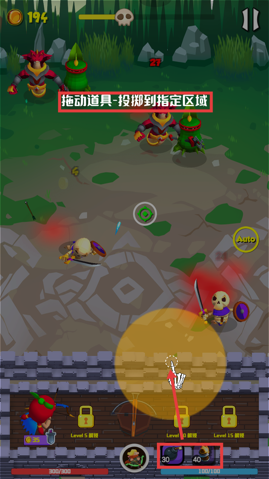 3、遇密集敌人时,【拖动道具-投掷到指定区域】,利用AOE效果快速清场。