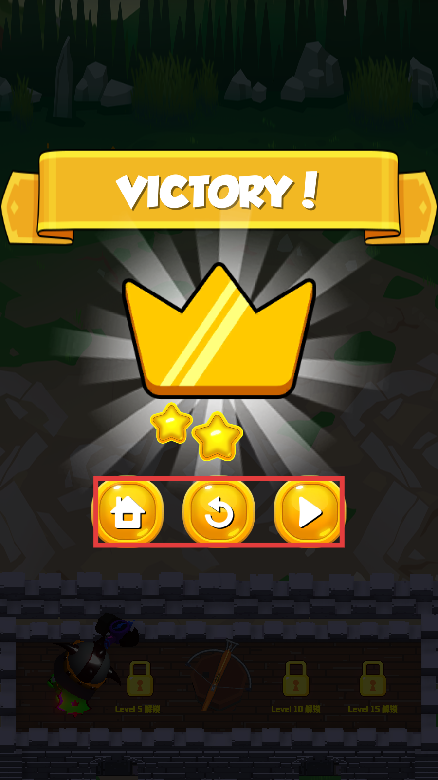 4、闯关胜利后,按需选择按钮,想继续挑战点三角,回主页点房子图标。