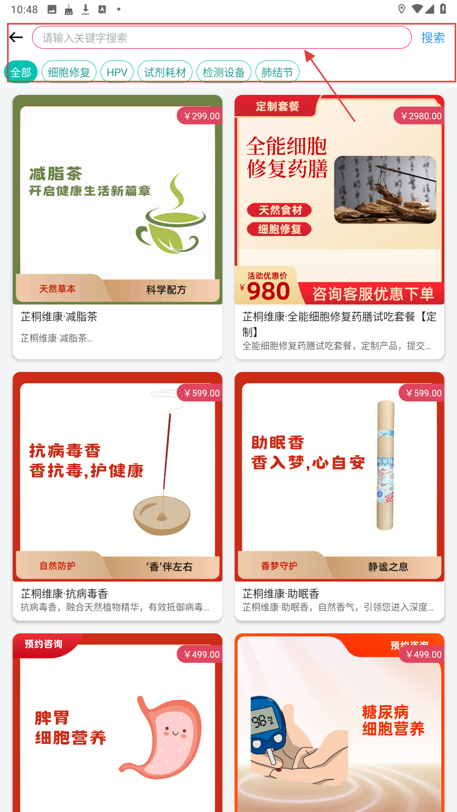 2、进入搜索页面,在上方搜索栏搜索需要的商品关键字,并点击进入。