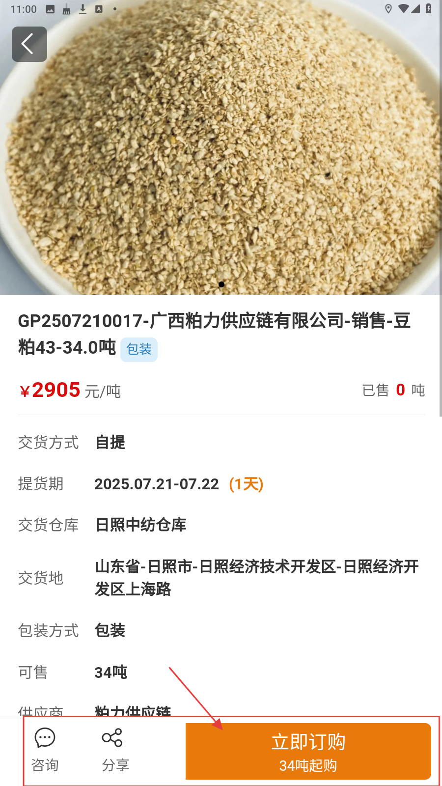 3、进入商品详情页面,查看商品信息,如若购买点击【立即订购】。
