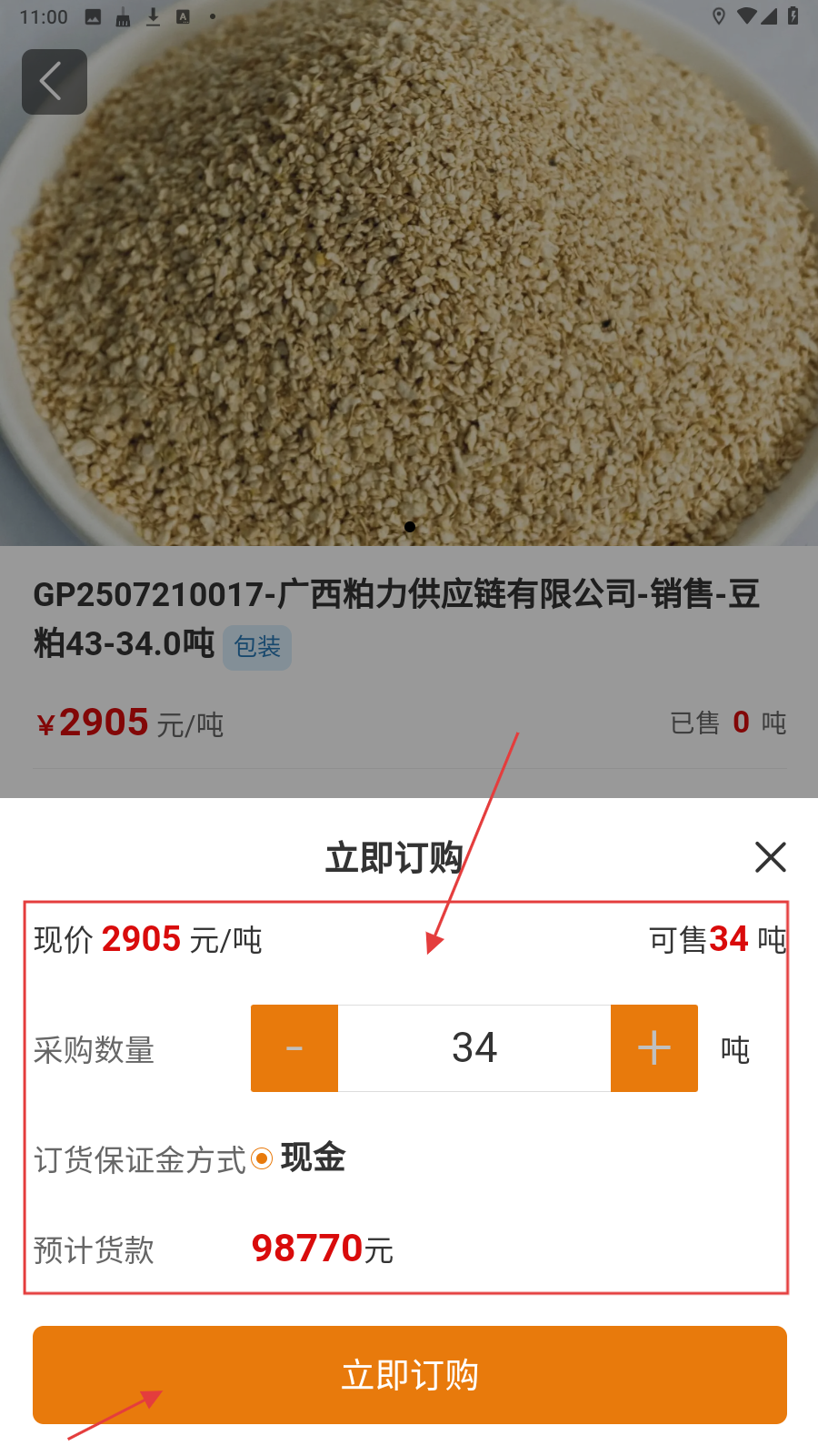 4、设置采购数量后点击下方【立即订购】按钮即可购买。