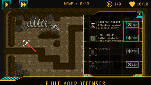 2、战斗中,按需造HARPOONTURRET鱼叉炮塔,单体输出清怪,补充防御。