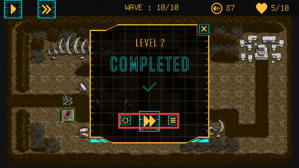 3、关注波次进度(WAVE),10波全守完,达成LEVEL2COMPLETED。