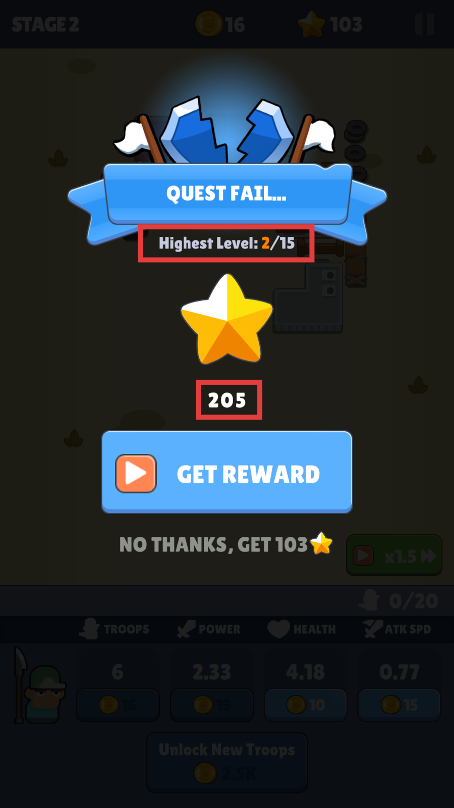 2、战斗中关注【TROOPS】【POWER】等属性,金币够时升级,提升部队战斗能力。