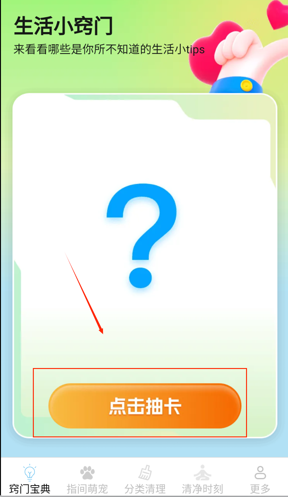 1、打开APP选择功能模块,通过抽卡或搜索获取生活妙招,解决日常家务难题哦。