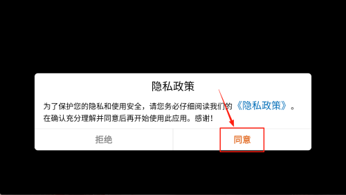 1、点击“同意”按钮,阅读并接受隐私政策,以便继续下一步。