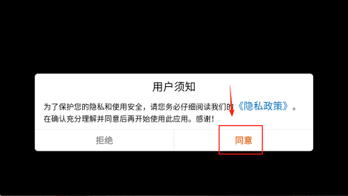 1、点击“同意”按钮,阅读并接受用户须知与隐私政策,继续下一步。