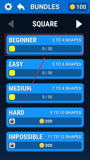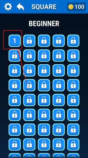 3、点击第一个关卡(标有“1”的方块),进入游戏。