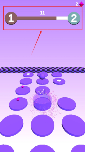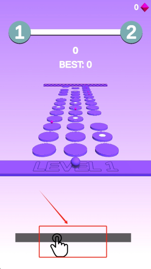 1、操控小球在关卡中跳跃,观察平台分布,点击屏幕控制跳跃力度,避开无台子区域,初步掌握跳跃节奏,开启闯关之旅。