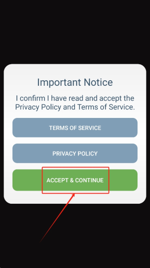 1、首先,阅读并同意隐私政策和使用条款,点击“ACCEPT & CONTINUE”以继续。