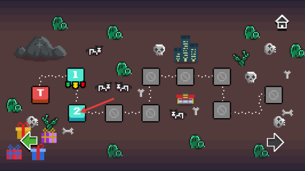 1、在地图界面,选择【2】号关卡方块,进入像素冒险场景。