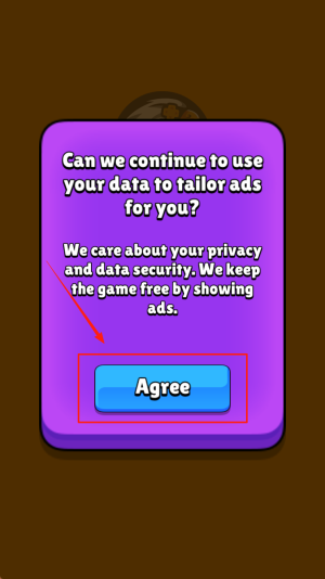 2、弹出“Can we continue to use your data to tailor ads for you?”时,选择“Agree”以继续免费游戏。