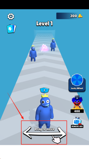 3、在“Level 1 Lucky Wheel 400 Drag to move”界面,按住并拖动屏幕移动角色,准备战斗。